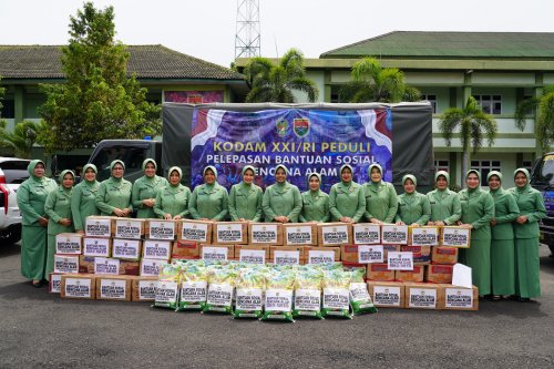 Pelepasan bantuan ini turut disaksikan jajaran pimpinan Kodam, di antaranya Kasdam XXI/RI, Danrem 043/Gatam, Irdam XXI/RI, Kapoksahli Kodam XXI/RI, para Asisten Kasdam, para Dan/Kabalakdam XXI/RI, serta jajaran Persit KCK Daerah XXI/RI dan Koorcab Rem 043 PD XXI/Radin Inten.