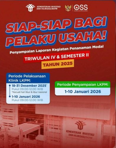 Untuk mempermudah proses pelaporan, pemerintah menyediakan Klinik LKPM yang dibuka pada 18–31 Desember 2025 serta 1–10 Januari 2026, pukul 09.00–12.00 WIB. Fasilitas ini diperuntukkan bagi pelaku usaha yang memerlukan pendampingan teknis.