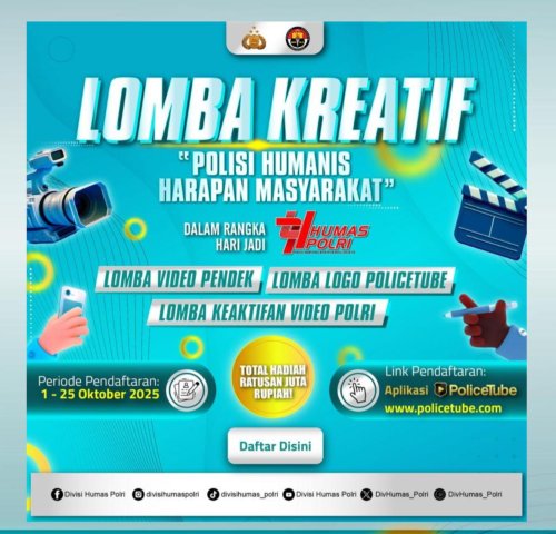 LAMPUNG – wartaonelampung.com, Dalam rangka memperingati Hari Ulang Tahun Humas Polri ke-74 Tahun 2025, Divisi Humas Polri menyelenggarakan kegiatan lomba kreatif sebagai wadah partisipasi masyarakat, pelajar, mahasiswa, maupun wartawan untuk mewujudkan sinergitas Polri Untuk Masyarakat. Senin(6/10/25).