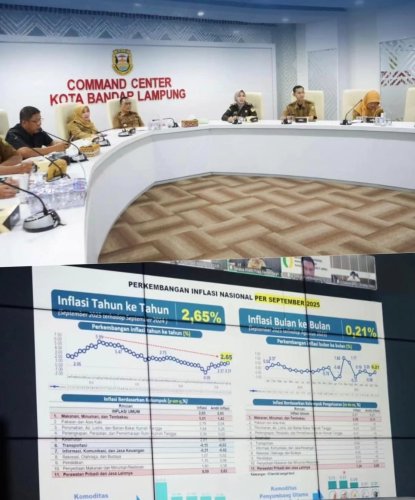 Bandar Lampung — wartaonelampung.com, Pemerintah Kota Bandar Lampung melalui Dinas Komunikasi dan Informatika mengikuti Rapat Koordinasi (Rakor) rutin Pengendalian Inflasi Tahun 2025 yang diselenggarakan oleh Kementerian Dalam Negeri (Kemendagri) RI secara virtual, bertempat di Ruang Command Center Dinas Kominfo Kota Bandar Lampung, Senin (13/10/2025).