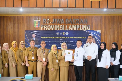 Penandatanganan perjanjian kerja sama ini dilaksanakan di Lapas Narkotika Bandar Lampung dan dihadiri langsung oleh Direktur RSJD Provinsi Lampung, dr. Nuyen Meutia Fitri, MARS, beserta jajaran.