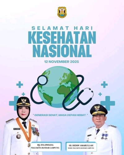 Peringatan HKN 2025, Pemkot Bandar Lampung Ajak Warga Wujudkan Generasi Sehat dan Masa Depan Hebat, 12 November 2025 Pemerintah Kota Bandar Lampung mengajak seluruh masyarakat untuk memperingati Hari Kesehatan Nasional (HKN) ke-61 dengan semangat meningkatkan kualitas hidup dan membangun generasi masa depan yang lebih sehat.