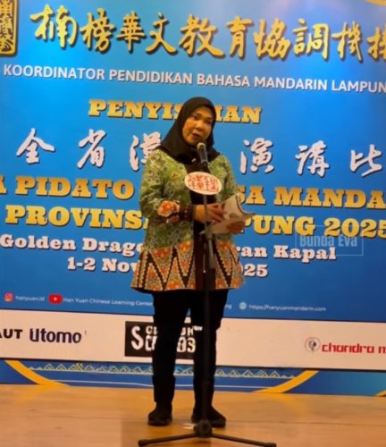 Wali Kota Eva Dwiana Buka Lomba Pidato Bahasa Mandarin se-Provinsi Lampung 2025: Dorong Semangat Belajar dan Prestasi Generasi Muda, Wali Kota Bandar Lampung, Hj. Eva Dwiana, menghadiri dan membuka secara resmi Lomba Pidato Bahasa Mandarin Se-Provinsi Lampung 2025 yang digelar di Golden Palace, Senin (3/11/2025).