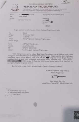 Pemanggilan ini merupakan respons atas adanya dugaan ketidakprofesionalan oknum penyidik Pidana Khusus (Pidsus) Kejaksaan Negeri Lampung Selatan dalam menjalankan tugas penyelidikan. Padahal, berdasarkan informasi yang dihimpun, perusahaan penyedia internet tersebut dinilai telah melaksanakan pekerjaan sesuai aturan dan kontrak yang berlaku.