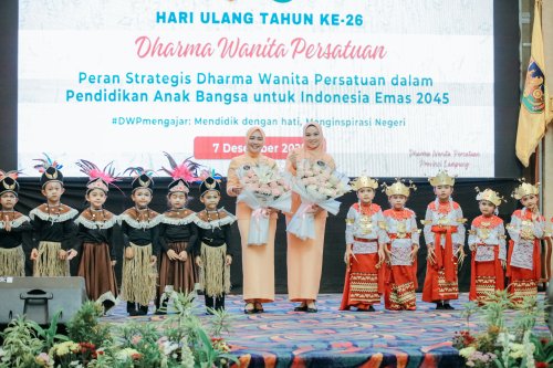 BANDARLAMPUNG — wartaonelampung.com, Peringatan Hari Ulang Tahun (HUT) ke-26 Dharma Wanita Persatuan (DWP) Provinsi Lampung menjadi momentum penegasan peran strategis perempuan dalam membangun karakter dan kualitas generasi bangsa menuju Indonesia Emas 2045.