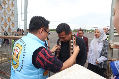 Bandar Lampung — wartaonelampung.com, Pemerintah Kota Bandar Lampung menyambut kedatangan delegasi Pemerintah Kota Kediri dan Pemerintah Kota Tidore Kepulauan dalam rangka kegiatan APEKSI Outlook Kota Bandar Lampung. Penyambutan berlangsung di Bandara Raden Intan II Lampung, Kamis (18/12/2025).