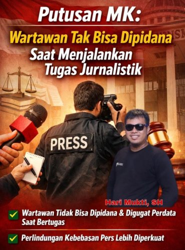 JAKARTA – wartaonelampung.com, Mahkamah Konstitusi (MK) memutuskan wartawan tidak dapat langsung dituntut pidana atas karya jurnalistiknya. Putusan ini merupakan tanggapan MK dalam uji materiil terhadap Pasal 8 Undang-Undang Nomor 40 Tahun 1999 tentang Pers (UU Pers) yang diajukan Ikatan Wartawan Hukum (IWAKUM).