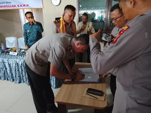 Dalam kegiatan tersebut, AKP Rudi, S.H., M.H. secara resmi mengakhiri masa tugasnya sebagai Kapolsek Katibung dan menyerahkan tanggung jawab jabatan kepada IPTU Dita Hidayatullah, S.H., M.H. sebagai pejabat Kapolsek yang baru.