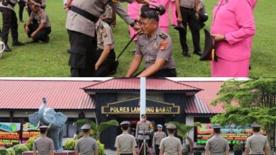 Lampung Barat — wartaonelampung.com, Mengawali tahun 2026, Polres Lampung Barat menggelar upacara laporan kenaikan pangkat…