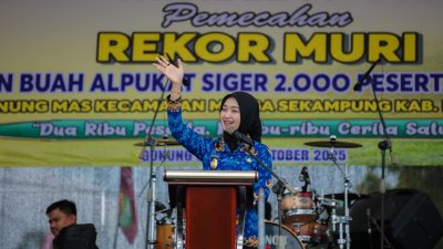 LAMPUNG TIMUR — wartaonelampung.com, Wakil Gubernur Jihan Nurlela menghadiri kegiatan Pemecahan Rekor MURI Makan Alpukat…